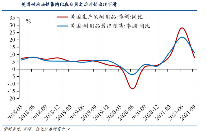 第二,美国耐用品消费同比出现拐点,而欧盟9月份耐用品销售同比仍然呈现高增长。