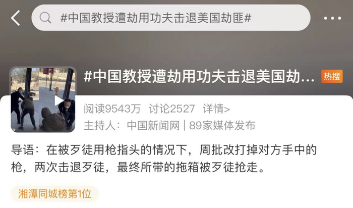近日,一则“被枪指头,中国教授用功夫击退劫匪”的视频,引发广泛关注。