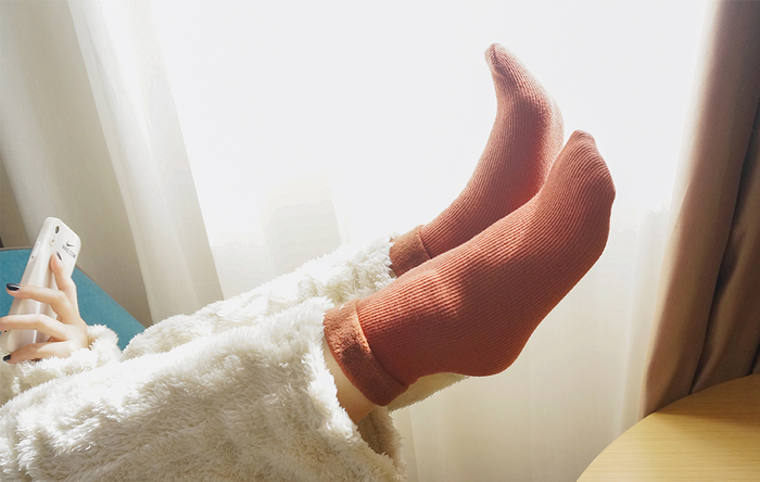 但是上班也不能带着小太阳和泡脚桶,穿的普通袜子保暖性又差,怎么办呢?