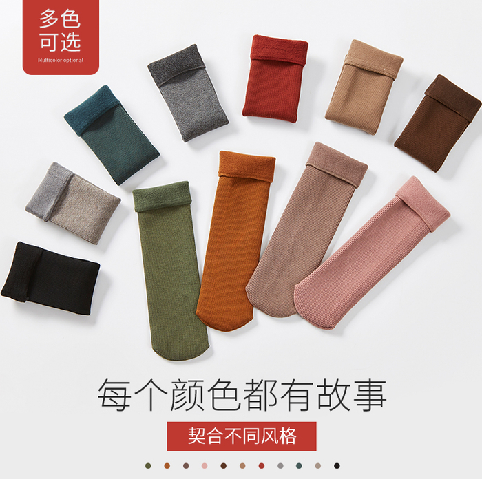 袜子内里的绒毛采用的是优质的仿棉羊绒蛋白纤维,里边的绒毛长短适中、穿着贴肤舒适,透气性很好。