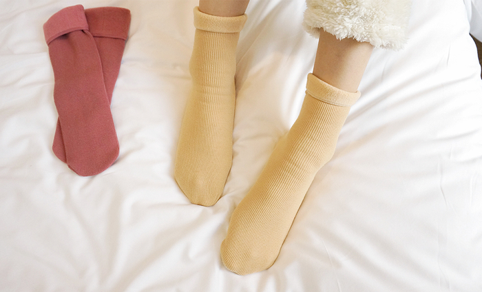 睡觉穿着它,从前多少个长夜漫漫,冷得翻来翻去睡不着,现在穿上雪地袜,脚暖如小太阳,一觉睡到天亮还不闷汗,痛经宫寒都减少了。
