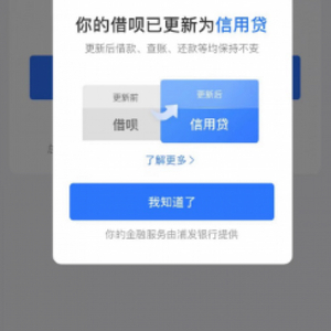 借呗方面还表示,未来借呗将由蚂蚁消费金融公司提供,并成为蚂蚁消费金融公司的专属品牌。在品牌隔离过程中,用户的服务体验不会受到影响,开通、查账、计息、借还款等核心流程不会发生变化。
