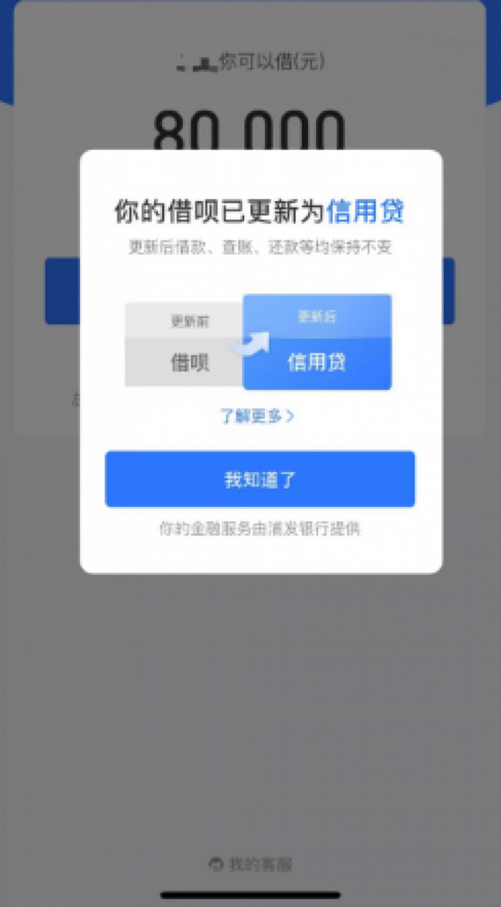 借呗方面回应称,借呗已启动品牌隔离工作,由蚂蚁消费金融公司提供的服务会继续显示“借呗”品牌,而银行等金融机构独立提供的信贷服务则会在“信用贷”页面展示,显著标识出金融机构信息,与借呗品牌相区隔。