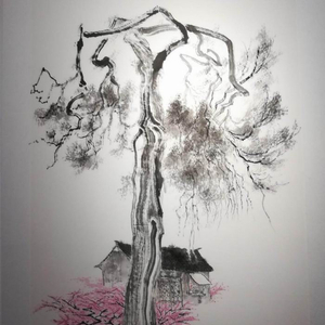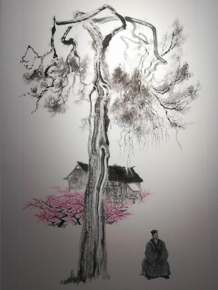 六朝松下的清道人。图自2021年11月南京大学“墨韵梅香——纪念李瑞清先生逝世一百周年书画文献展”。
