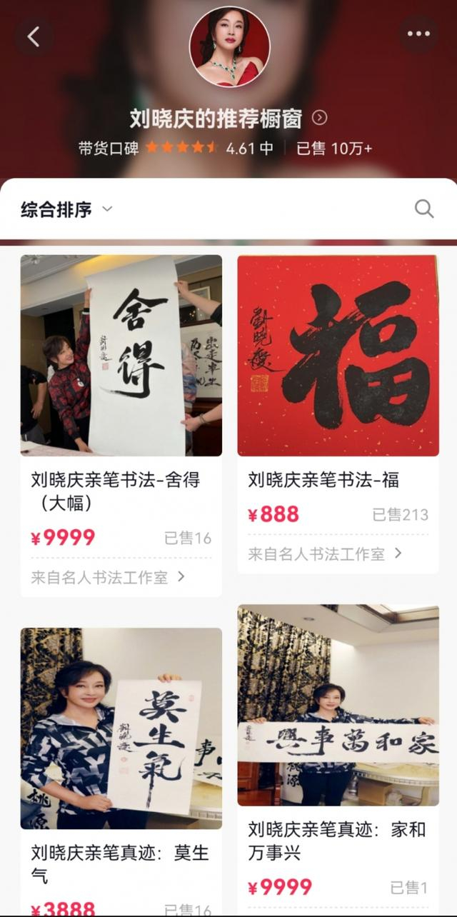 刘晓庆直播卖书法:售价888“福”字卖出213幅,最贵五个字9999元