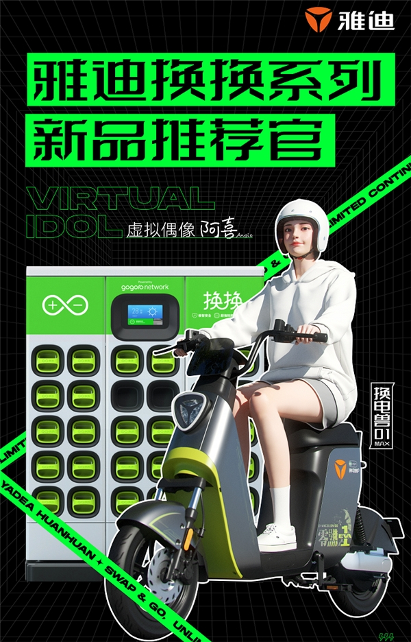 于去年秋天在国内社交媒体上初次亮相的阿喜Angie,正是雅迪换换系列近日新晋官宣的“破次元”新品推荐官。回顾过去就会发现,雅迪的历任代言人,李敏镐、胡歌、范迪塞尔等都是极具代表性的优质大咖,从品牌创立之初,就开始输出“提供让消费者有幸福感的产品和服务”的品牌理念。如今使用虚拟爱豆代言,又为品牌内核注入了时代的新意。