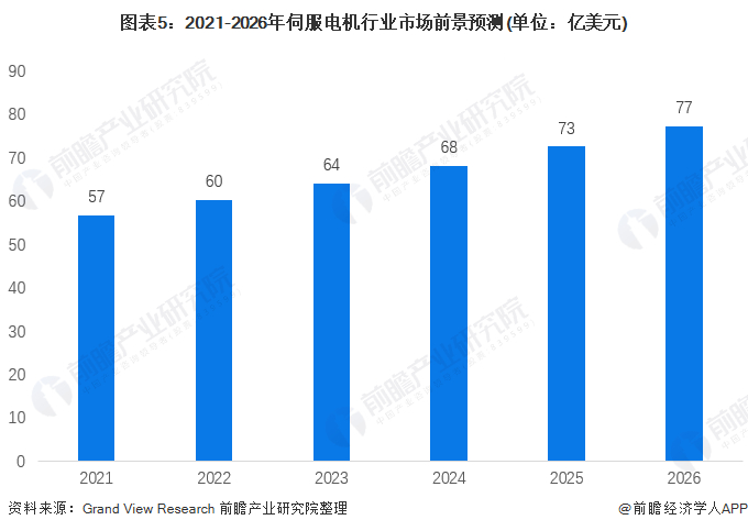 随着疫情的逐渐退去,全球的伺服电机市场得以逐步恢复,根据Grand View Research的预测,在未来5年,受到中国、印度等新兴市场需求引擎的刺激,全球伺服电机市场有望持续增长,预计2026年全球市场规模达到77亿美元左右。