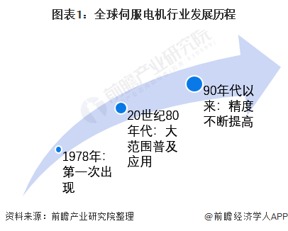 全球第一件伺服电机是德国的MANNESMANN的Rexroth公司,于1978年在汉诺威贸易博览会上正式推出的MAC永磁交流伺服电动机和驱动控制系统。此后,伺服电机不断发展,到20世纪80年代,基本全球各大制造商都发展出了各自的伺服电机产品系列,伺服电机开始大范围应用普及。90年代以来,随着电子控制技术的不断升级,伺服电机的控制技术逐渐从模拟信号控制向数字信号控制技术升级,提高了其内伺服系统的响应速度和控制精度。