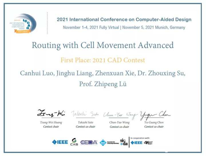 11月4日,EDA(电子设计自动化)领域的国际会议ICCAD 2021(计算机辅助设计国际会议)结束。会议上公布,华中科技大学计算机学院吕志鹏教授团队获得了CAD Contest布局布线(Routing with Cell Movement Advanced)算法竞赛的第一名。