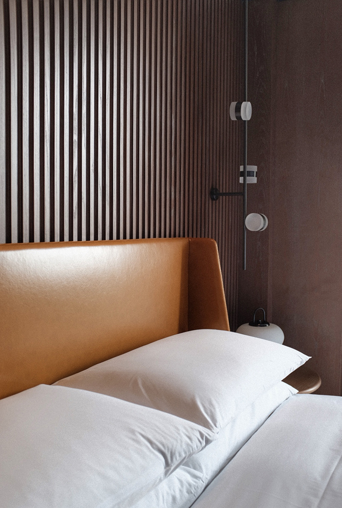 酒店拥有面积在 41-240 平方米之间的 342 间豪华客房、行政房和套房,均采用浅木色调设计。在大多数客房与套房中,都可透过落地窗欣赏秀美的湖景或山景,部分客房还有阳台,可供尽情饱览湖光山色。所有客房都配备有可调节高度的办公桌、集成充电器和多层次照明系统。浴室内配有现代步入式淋浴房及 Gilchrist & Soames 品牌沐浴产品。