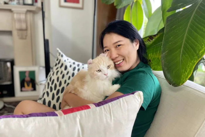 在上海的出租房里,王慧玲和她的猫