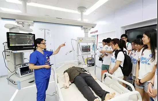 这是上海瑞金医院和迈瑞医疗联办的医学模拟中心,这里装配了从病床、呼吸机、麻醉机、到监护仪、除颤仪的全套迈瑞设备。