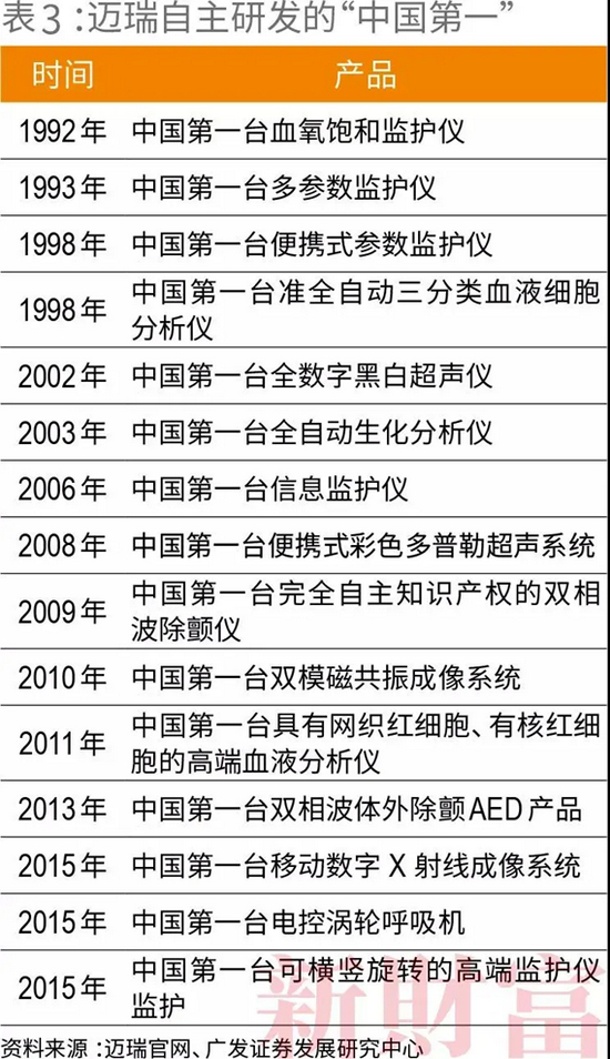 早在1992年,迈瑞就自主研发出了国内第一款单参数的血氧饱和度监护仪。不仅如此,有数据统计显示,迈瑞至少创造了医疗器械行业22个中国第一: