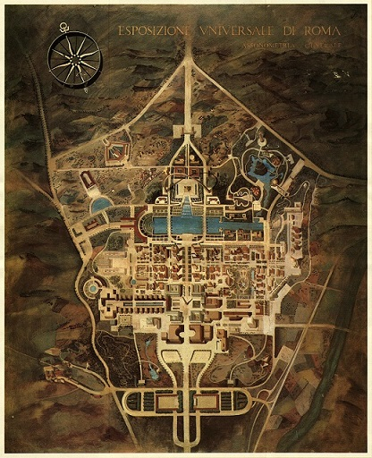 所谓人算不如天算,罗马世博会计划由于二战的爆发而被搁置,EUR区的建设被迫停工。在战争中,EUR区先后被德军和盟军所占领,那些半成品建筑被征用作为军需品仓库、修理厂和兵营。与墨索里尼和法西斯政权一同覆灭的,是他们重现帝国首都荣光的千秋大梦。