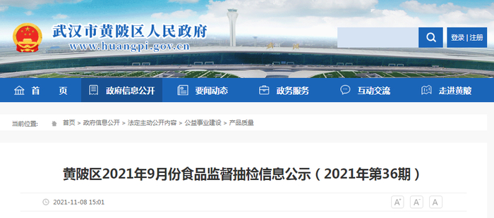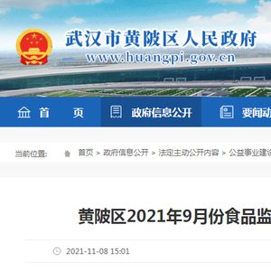 原标题:武汉市黄陂区市场监督管理局公示2021年9月份食品监督抽检信息(2021年第36期)
