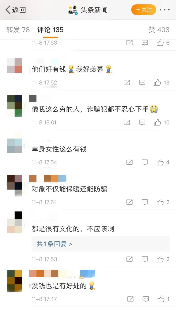 11月8日,一则“南京一周发生6起针对单身女性的百万元电诈”新闻在微博等社交网络上刷屏。