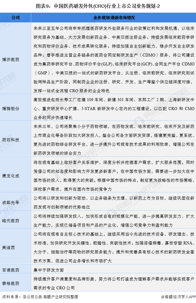 从医药研发外包(CRO)行业上市企业业务规划上看,未来,主要上市企业将继续扩张,抢占市场。