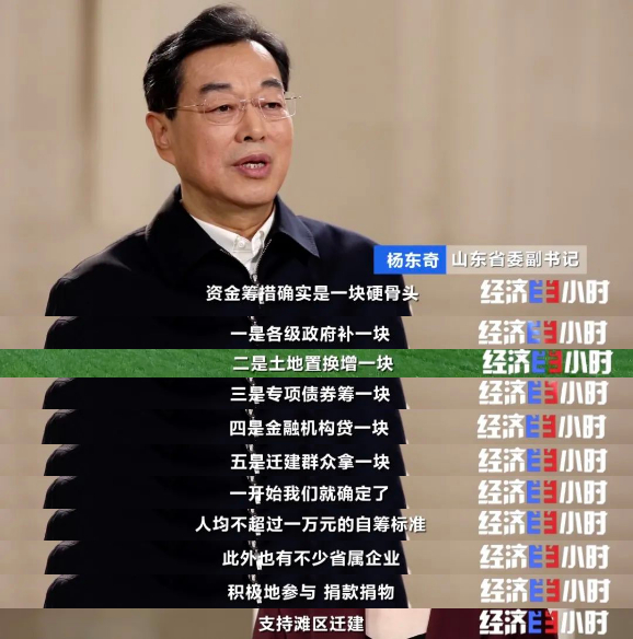 在为期三年的大迁建中,山东省在工作当中主要创新实施了“五个一块”的总体筹资思路,累计投资高达371亿元,多措并举来减轻滩区群众的自筹负担,让群众少拿钱,甚至不拿钱。