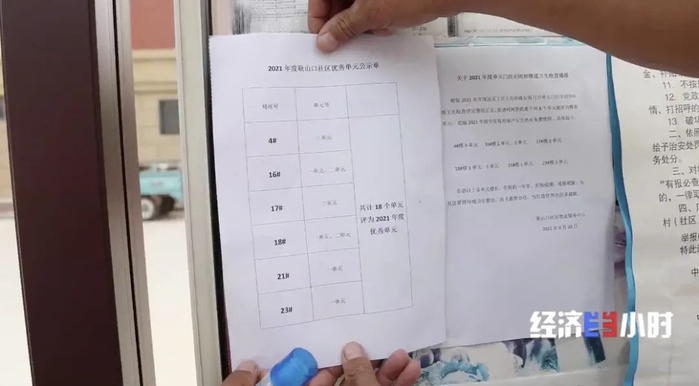 泰安市东平县的耿山口社区居民都是从滩区的耿山口村搬迁过来的村民,为了让村民更好地适应社区生活,这里经常进行卫生突击检查,有垃圾扣2分,楼道里停电动车扣5分,而模范单元能得到一面流动红旗。
