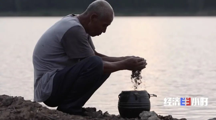 今年立秋,71岁的李振国在黄河岸边举行着一个小小的仪式,他很快就要离开这片住了一辈子的滩区。带上一抔故乡气息的黄土,再看一眼奔流不息的黄河水。