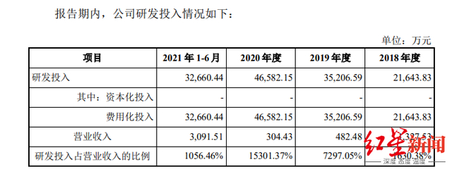 招股书显示,2018年至2021年上半年(报告期),荣昌生物实现营业收入分别为1327.53万元、482.48万元、304.43万元、3091.51万元;同期净亏损分别为-2.7亿元、-4.3亿万元、-6.98亿元、-4.44亿元。再加上2021年第三季度亏损增加,红星资本局计算,荣昌生物最近几年累计亏损已经超过20亿元,可见新药研发领域确实相当“烧钱”。