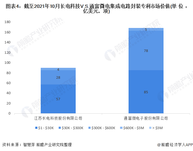 (2)专利市场价值对比:通富微电专利市场价值更高