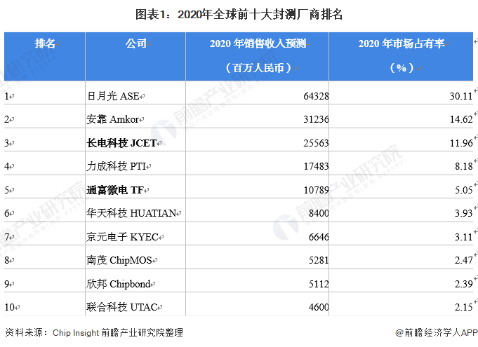 1、全球集成电路封装竞争格局:长电科技和通富微电为全球龙头企业