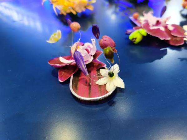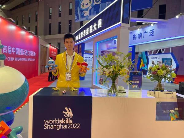展期首日,世界技能大赛主题展区内容精彩纷呈,除了传递有关世界技能大赛的最新资讯等外,第44届世界技能大赛花艺项目金牌获得者潘沈涵及其它花艺大赛冠军也带来了精美花艺作品——由十余种鲜花和不同编织技法制成的胸花,展示上海技能的精巧与魅力。潘沈涵表示,这是他首次参加进博会,能借助世赛机遇一起来到进博会很高兴,进博会中很多展陈设计也带给他不少新的花艺灵感。“我们主花用了蝴蝶兰,辅以火焰百合、天鹅绒、风信子等。从造型上看,水滴型更为柔美,比较适合女性;菱形有棱角,更为适合男性。”展陈工作人员表示,胸花往往用于隆重活动,此次花艺作品也寓意着上海热烈期待明年在上海举办的第46届世赛,欢迎来自世界各地的嘉宾和技能高手。