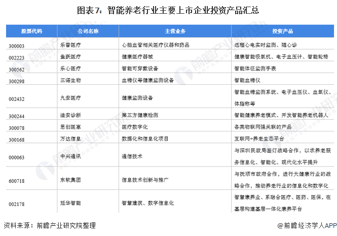 智能养老代表性企业最新投资动向:上市企业积极布局智能养老行业产品