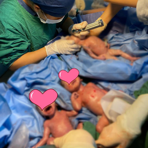 产妇聂女士8月28日来院保胎。由于是三胎妊娠,加之仅30+1周,产妇及家属极为谨慎紧张。9月1日晚她上了个厕所出来后便感觉有腹痛,经医生检查发现是临产的征兆!因为只有第一个胎儿是头位,另外两个胎儿是臀位和横位,并且孕周太小,属于早产儿,因此考虑马上急诊剖宫产手术。