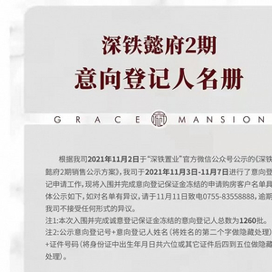继昨天新世界临海揽山御园获得不错的认筹成绩后,同在南山的深铁懿府也揭晓了认筹人数,共有1260批客户成功完成意向登记并冻资。