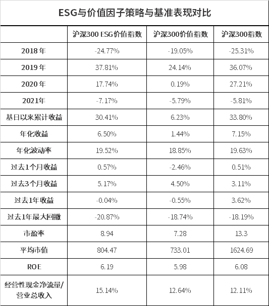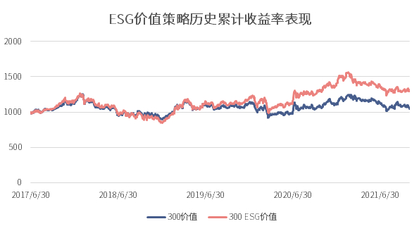 价值投资策略的逻辑在于投资估值较低的上市公司,获取估值提升所带来的收益。然而只采用价值因子策略具有一些不足:上市公司的估值水平受到其可持续发展水平和盈利能力的共同影响,仅使用价值因子会缺少对业绩可持续性和盈利质量等问题的关注。在原有沪深300价值指数基础上加入ESG得分,反映上市公司业绩可持续性和盈利质量等特性,增强价值因子策略的表现。