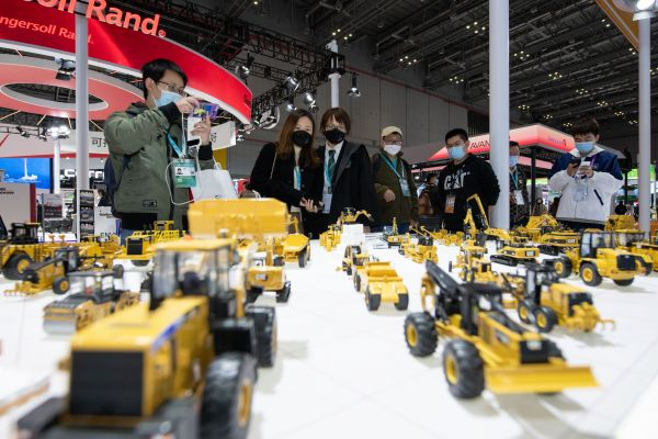 11月8日拍摄的进博会技术装备展区的美国卡特彼勒公司展台。(新华社记者 孟涛 摄)