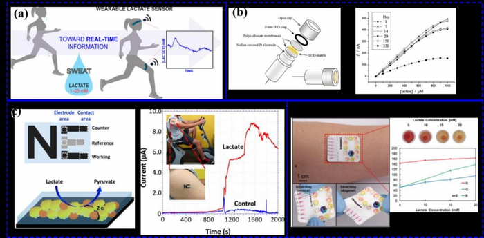 加州大学Wenzhao Jia等人第一个提出基于柔性打印的纹身电极电化学传感器用于汗液乳酸的检测,由于无创的乳酸检测对实际运动比赛具有重要意义,引起了世界各国科研工作者广泛研究。