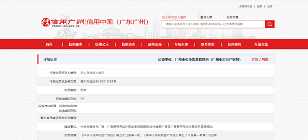 中国网财经11月11日讯(记者杜丁 见习记者安荻)昨日,信用广州发布一则关于广东美恩整形美容医院有限公司的行政处罚信息(穗天市监处字[2021]728号)。