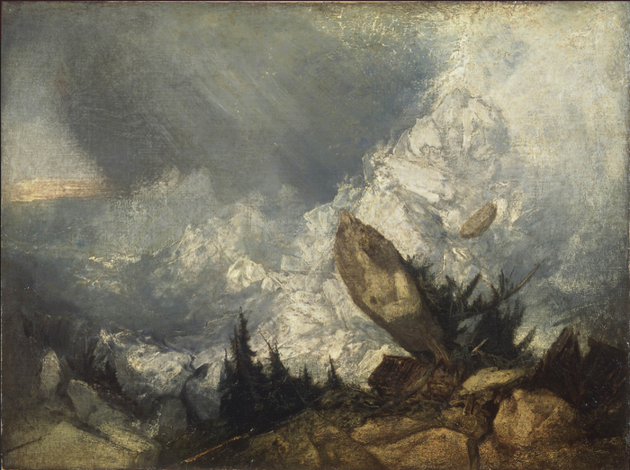 《格里松山的雪崩》 约瑟夫·马洛德·威廉·透纳(1775-1851) 1810年展出 布面油画 1856年作为透纳遗赠由英国泰特美术馆接收,上海博物馆2018年展览“心灵的风景:泰特不列颠美术馆珍藏展”展出