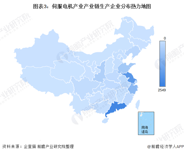 伺服电机产业产业链区域热力地图:广东省分布最集中