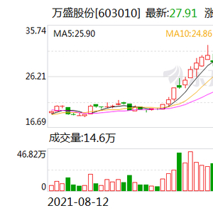 资料显示,万盛股份为磷系阻燃剂全球龙头企业,今年以来受阻燃剂量价齐升的利好影响,公司业绩不断向好,三季报显示,由于产品量价齐升,公司报告期营业收入30.68亿元,同比上升97.8%;实现净利润6.25亿元,同比上升171.41%;扣非净利润6.18亿元,同比上升183.09%;其中2021年第三季度,公司单季度主营收入10.77亿元,同比上升61.54%;实现净利润1.95亿元,同比上升58.17%;单季度扣非净利润1.93亿元,同比上升65.65%。