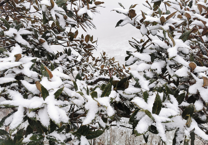 今年冬天金佛山的第一场雪,是从昨天下午1点40分左右开始,如花瓣般的雪花窸窸窣窣从天空中飘落,降落在山林、屋顶、树枝和草地上。随着雪花的飘落,金佛山也从缤纷的彩林深秋景色转换到玉树琼枝、银装素裹的冬季美景,尽显南国雪原的魅力。据了解,到今天上午,金佛山上的气温还在持续走低,目前已下降到零下3℃左右。相比2020年金佛山的首场冬雪,今年提前了近20多天。