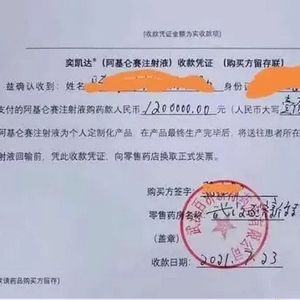 一张流出的阿基仑赛注射液的药品销售订单显示,该产品零售价为120万元/袋。