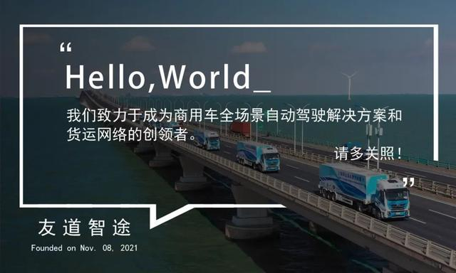 11月8日,商用车智能驾驶科创公司——上海友道智途科技有限公司正式注册挂牌,注册资本为10亿元人民币,落户中国(上海)自由贸易试验区临港新片区。