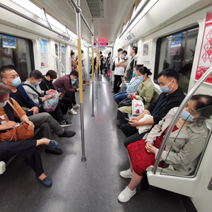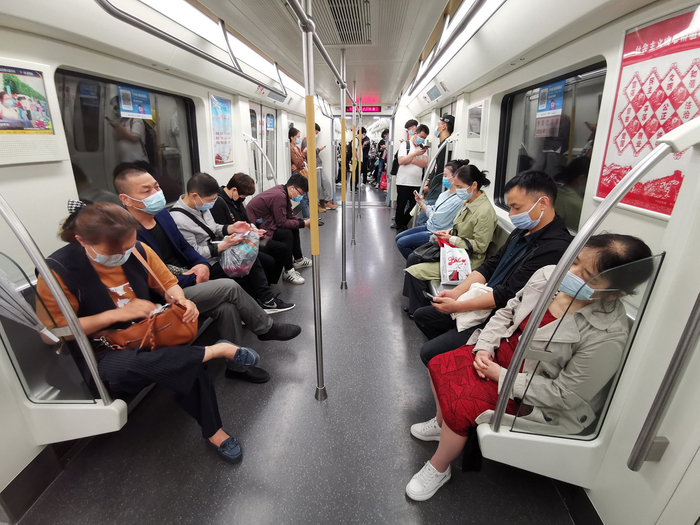 2021年5月24日,武汉地铁车厢里的众多乘客 图源:视觉中国