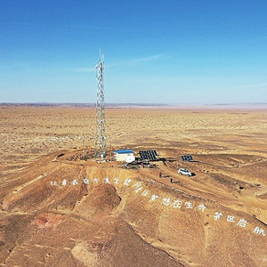 内蒙古自治区阿拉善盟额济纳旗算井子地区被称作“生命的禁区”,图为内蒙古移动在此荒漠中建立的基站。