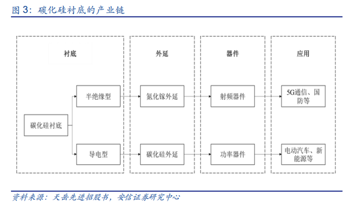 由上至下,SiC产业链可以分为衬底、外延、器件和应用四大环节。