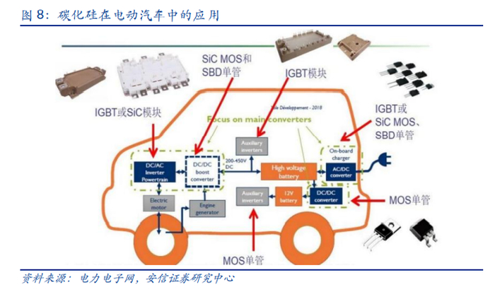 新能源时代将是SiC的大舞台。在新能源汽车行业,SiC可用于驱动和控制电机的逆变器、车载充电器和快速充电桩等。