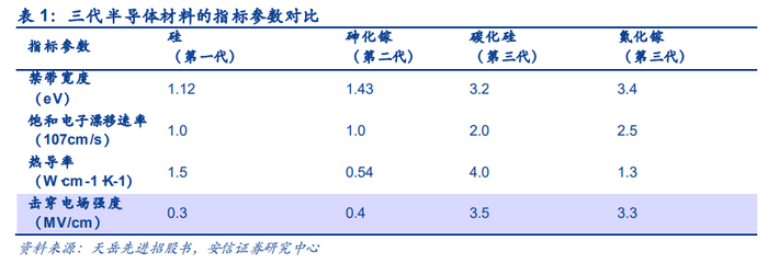 第三代半导体材料以SiC和氮化镓为代表的宽禁带半导体材料,适用于高温、高压、高频率场景,同时具有电能消耗较少的优势。