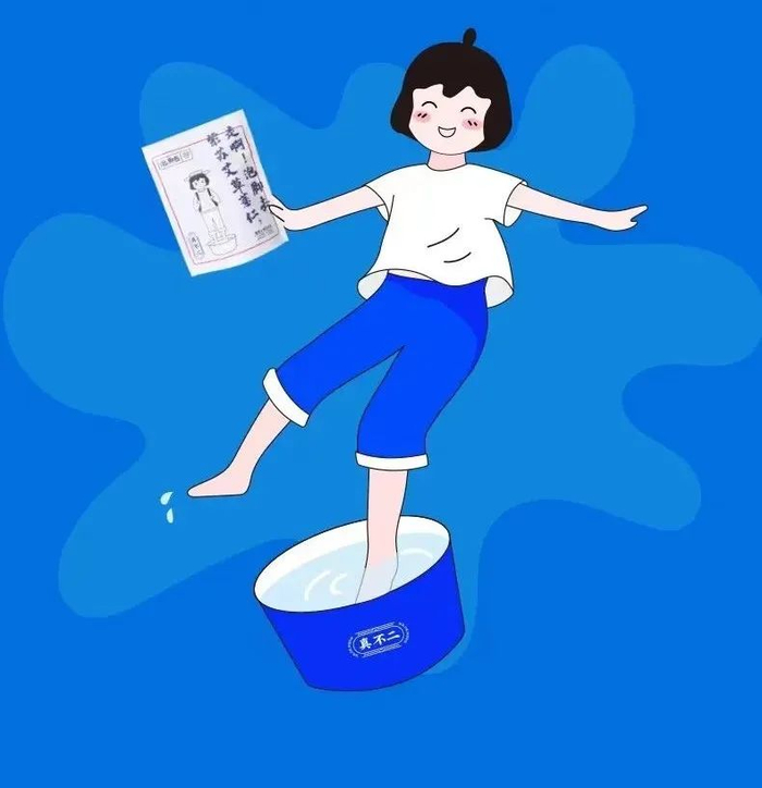 打开“真不二”的天猫店铺,迎接你的是一系列扎着丸子头的漫画形象,唯一的共同之处是,包装上的女孩都正在泡脚。