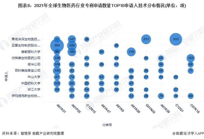 收藏!2022年全球生物医药行业技术竞争格局(附区域申请分布、申请人排名、专利申请集中度等)