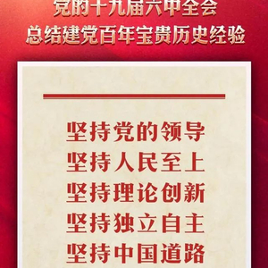 2021年11月8日至11日,党的十九届六中全会在北京举行。全会审议通过了《中共中央关于党的百年奋斗重大成就和历史经验的决议》。全会提出,一百年来,党领导人民进行伟大奋斗,积累了宝贵的历史经验,这就是:坚持党的领导,坚持人民至上,坚持理论创新,坚持独立自主,坚持中国道路,坚持胸怀天下,坚持开拓创新,坚持敢于斗争,坚持统一战线,坚持自我革命。