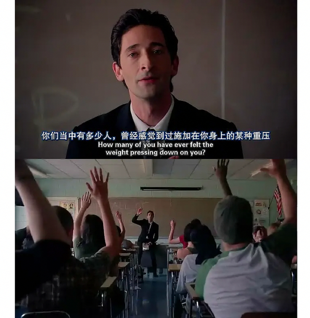 电影《超脱》(2011)剧照。影片中,一个拥有与学生进行某种情感交流天赋的老师在帮助他人的同时,其实内心也有很大的压力:爷爷处于弥留之际,母亲自杀阴影始终在脑海中萦绕。